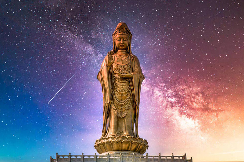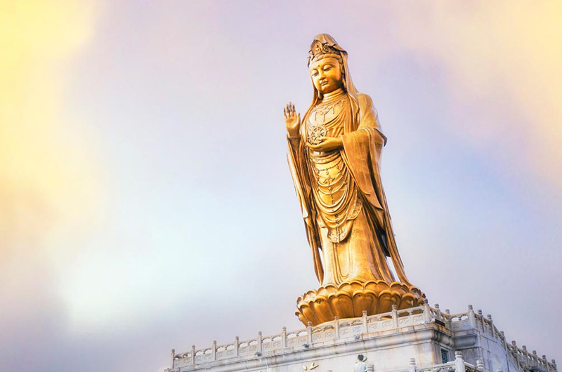 ★南海观音坐落于双峰山南端的观音跳山岗上。立像台座三层,总高33米,其中佛像18米